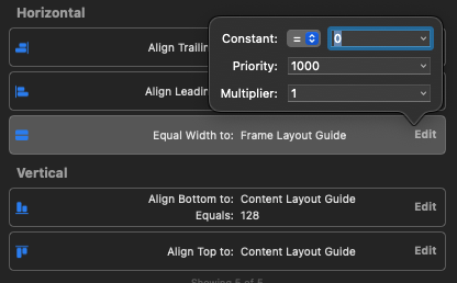 4. View -> Frame Layout Guide(Equal Widths) 추가 후 Multiplier 1 로 설정