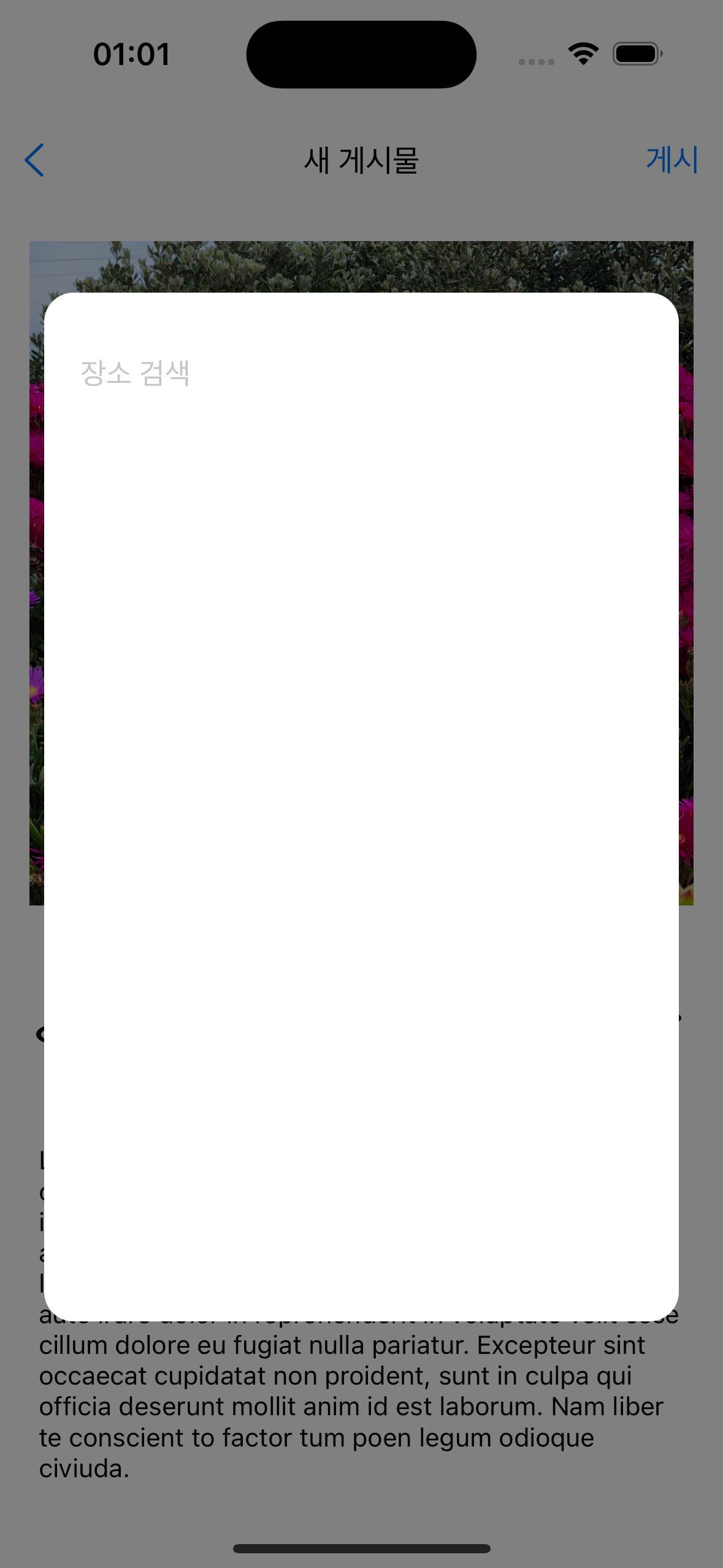 당연하게도, 모달창을 누르면 "seachResultTableView"와 "self.view"가 같이 출력되었다.